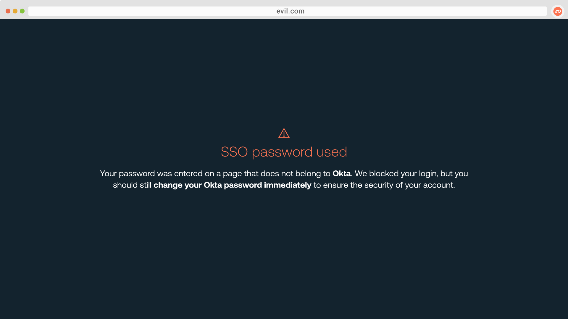 The Push browser agent will detect when employees attempt to enter their IdP password (such as Okta) into webpages that do not belong to that IdP.