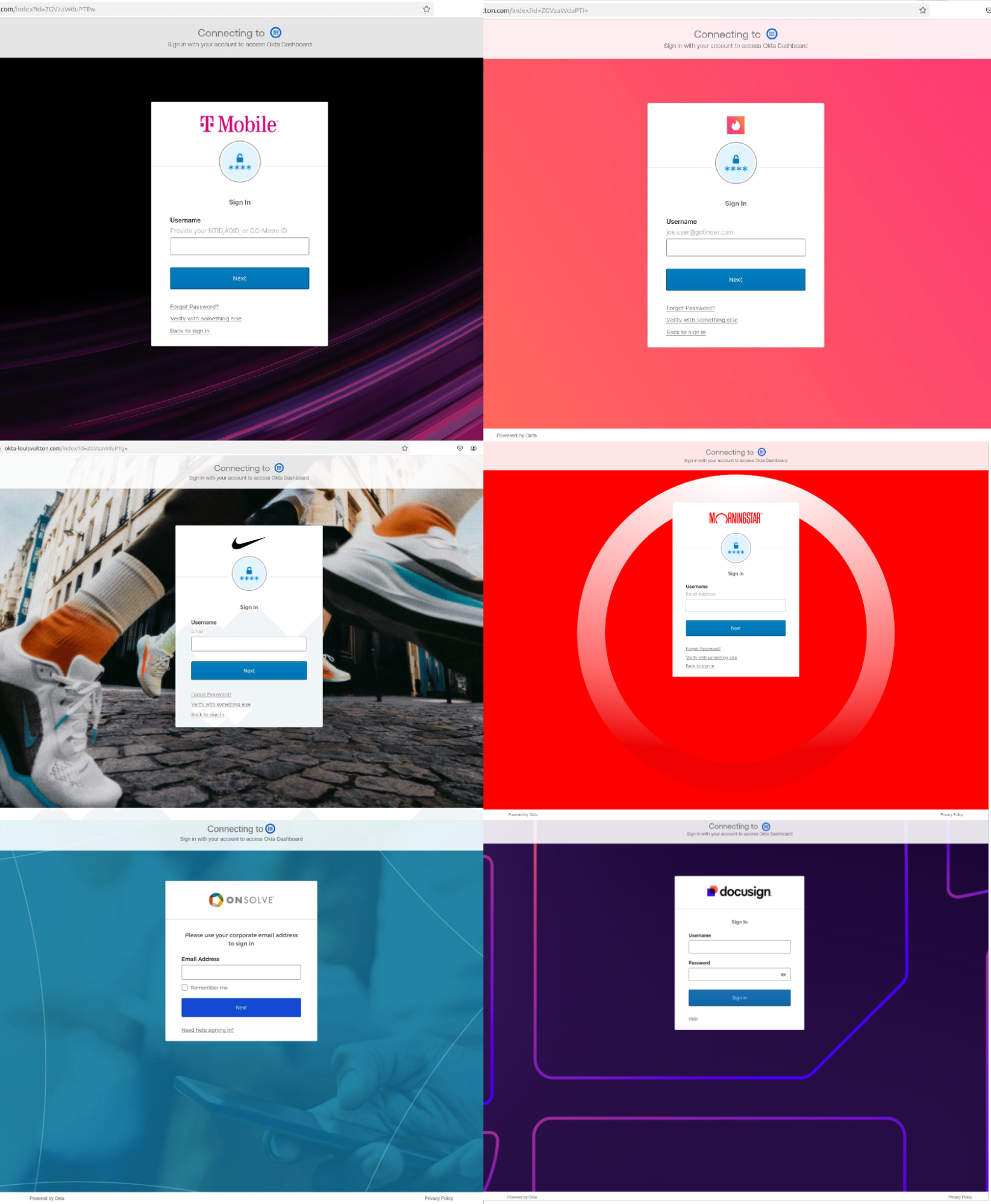 While Okta accounts remain a key target for Scattered Spider, they are using a range of customized landing pages to target Okta accounts for various organizations at URLs like: