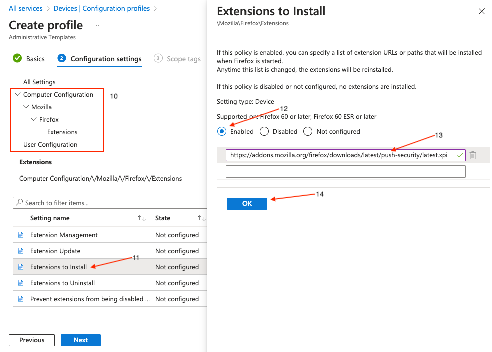 Note: If you are deploying the Push browser extension for multiple browsers, review each section of this documentation to avoid missing settings that need to be applied in each instance.